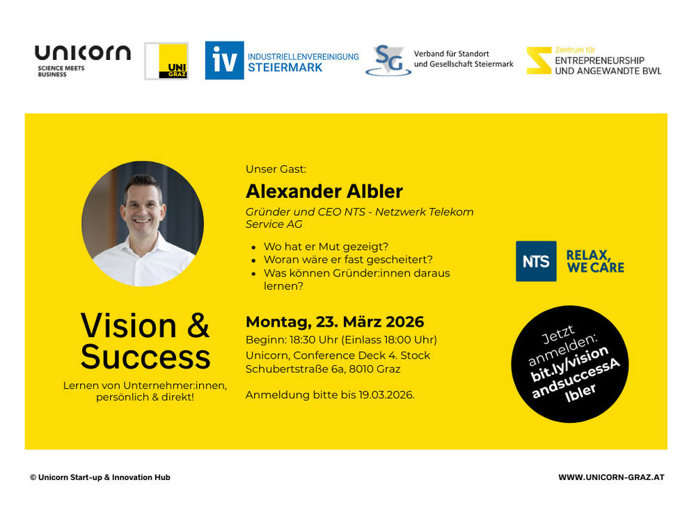 Unsere Veranstaltungsreihe "Vision & Success", die wir in Kooperation mit der Industriellenvereinigung Steiermark veranstalten, gibt Einblicke in das Leben erfolgreicher Unternehmer:innen.
