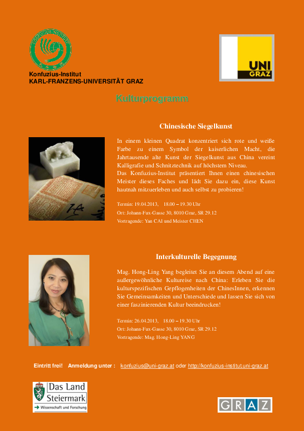 Um Anmeldung wird gebeten unter : konfuzius@uni-graz.at oder konfuzius-institut.uni-graz.at