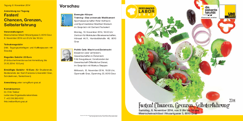 Wir veranstalten für alle Interessierten eine Tagung, in der wir in 5 Vorträgen das Thema Fasten aus unterschiedlichen Blickwickeln betrachten. Diskutieren Sie mit!