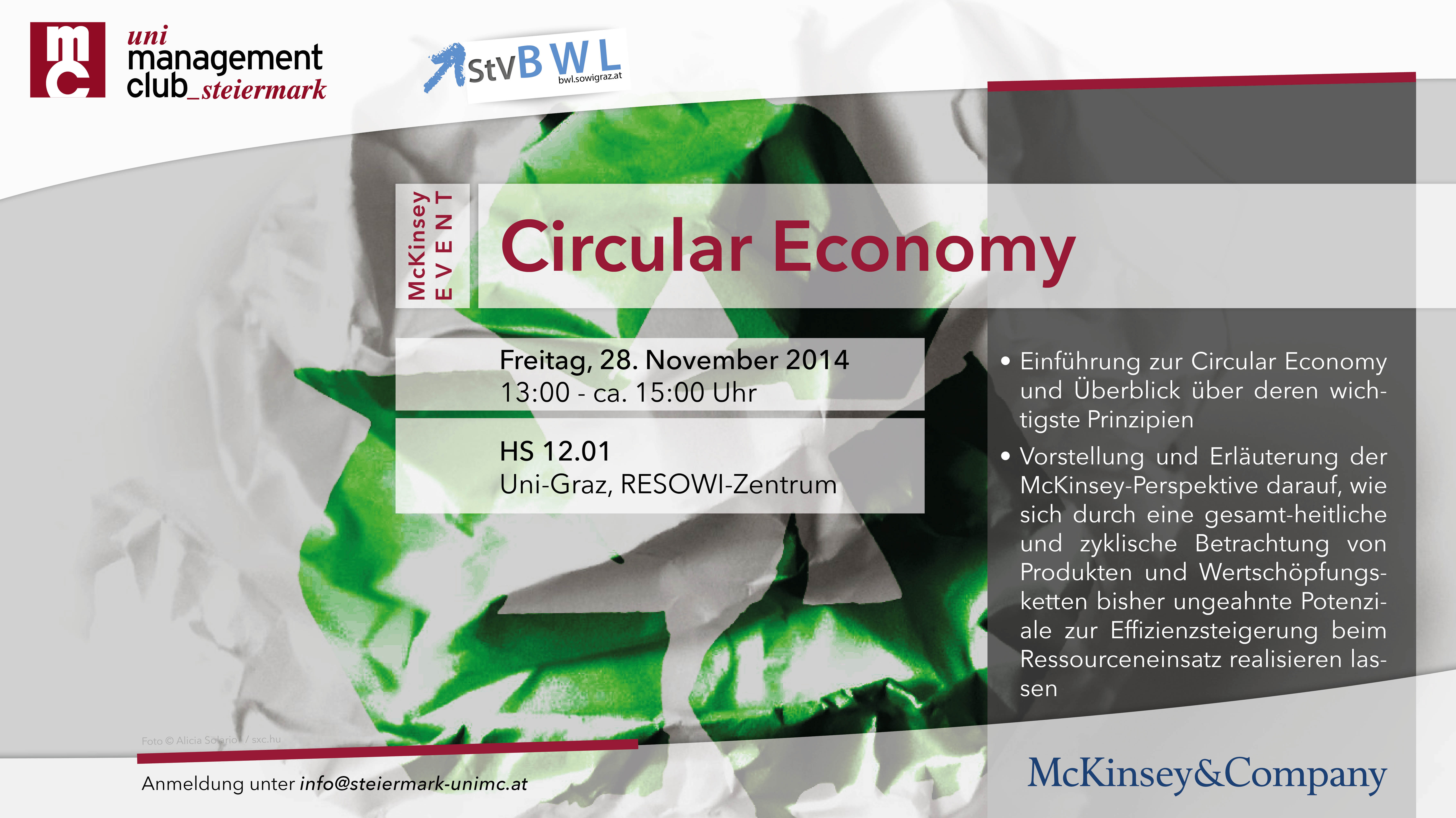 Nach einer kurzen Unternehmenspräsentation geben wir Ihnen dazu zunächst eine Einführung zu den wichtigsten Prinzipien der „Circular Economy“. Im Anschluss zeigen wir anhand konkreter Praxisbeispiele auf, wie sich durch eine gesamtheitliche und zyklische Betrachtung von Produkten und Wertschöpfungsketten bisher ungeahnte Potenziale zur Effizienzsteigerung beim Ressourceneinsatz realisieren lassen – und welche Chancen und Herausforderungen aus dem sich abzeichnenden Paradigmenwechsel des Wirtschaftskreislaufs resultieren.